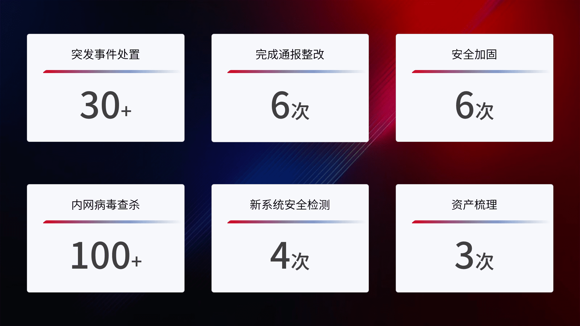 根据客户需求定制整改方案,,,,强化应急演练,,,提升网络安全事件应对能力。。。
